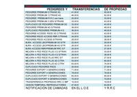 ESTAS TARIFAS PUEDEN SER MODIFICADAS SIN PREVIO AVISO POR LA RSCE o S.C.N